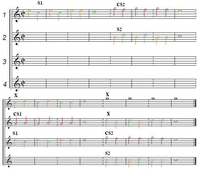 in the Counter-subject, the substitutions for the sonorities with the Subject,